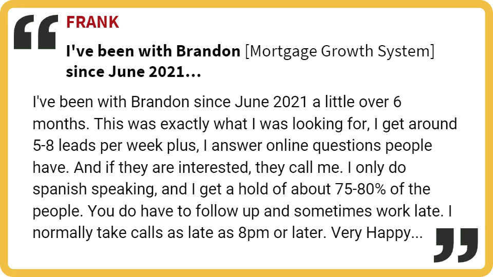 Scroll down to check out dozens of unscripted, live interview case studies and Reviews of The Mortgage Growth System