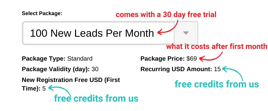 When signing up choose the 100 Lead Package option unless you are a team using round robin (see below). The 100 lead option is the only one with a 30-day trial.