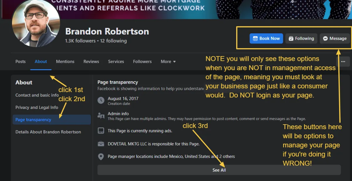 How to find your comments and reply to them. (Just go to your business page then follow the click instructions in the photo below - click on images to enlarge)
