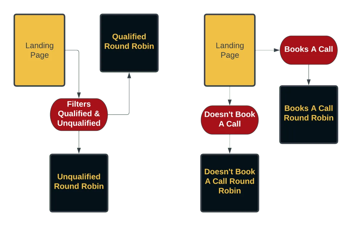NOTE: What is actually happening is that there are typically at least 2 round-robin flows and there will always be a first person and last person in each flow (the same person who is last, first and in between will be the same in both) and each of the people on the front end of the Lead Flow may receive two leads before the last person receives even one.