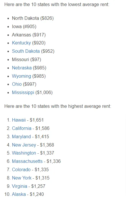 There are additional charts encompassing all states on that website and their average rent prices which usually correlate to the home values and therefore loan sizes.