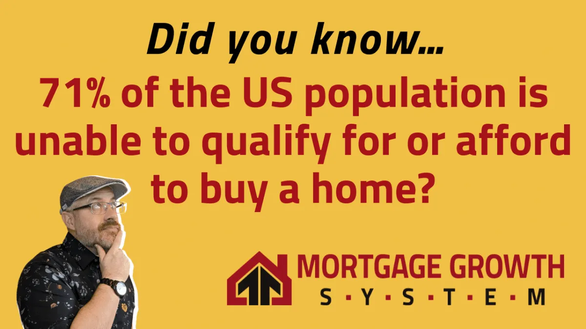 A credit repair specialist we refer LOs to gave us the exact same numbers, stating that 70%+ of the the adult US population does not have the credit (nor money) necessary to qualify for a mortgage.